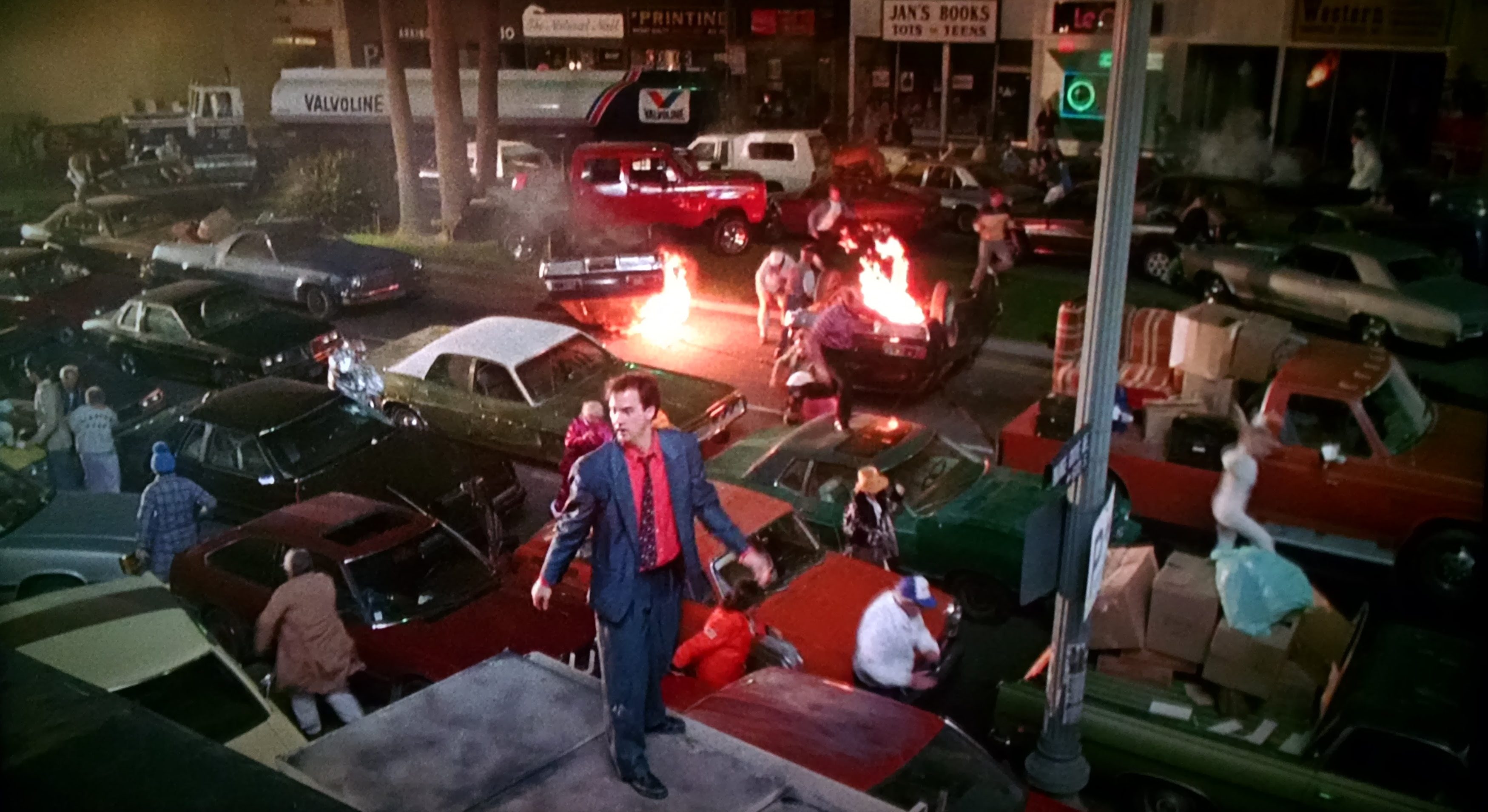 Miracle Mile doesn’t dive too deep into Cold War commentary, but it does have something to say about the epidemiology of fear. While the film is certainly driven by society’s worst fears of mutually assured destruction during the Cold War, it is also a commentary on fear itself. Several characters in Miracle Mile leap to drastic, violent action, even without any proof of impending doom. Harry generally stays level-headed, but even he goes well beyond what we imagine him being capable of at the beginning of the film. When the characters’ fears take more concrete form later on, the chaos has already reached a fever pitch and people are literally dying in the streets. That the film manages to end on a bizarrely touching note in the face of oblivion is one of its’ amazing qualities.